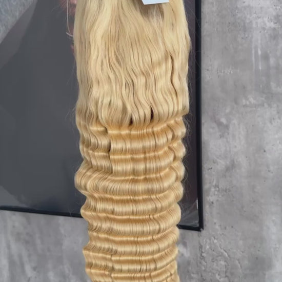 613 is a platinum blonde shade/ light blonde that has been chemically processed to remove all natural pigment to achieve it's bright blonde shade. Which means shedding and breakage will occur. 613 blonde hair has an altered cuticle due to the bleaching process. Meaning less cuticle protection, requires more moisture. 613 is perfect for those love versatility and customer color transformation. 613 can dye any shade of your choice without the need for additional bleaching(saving you time).WHAT TO LOOK FORWARD TOO?